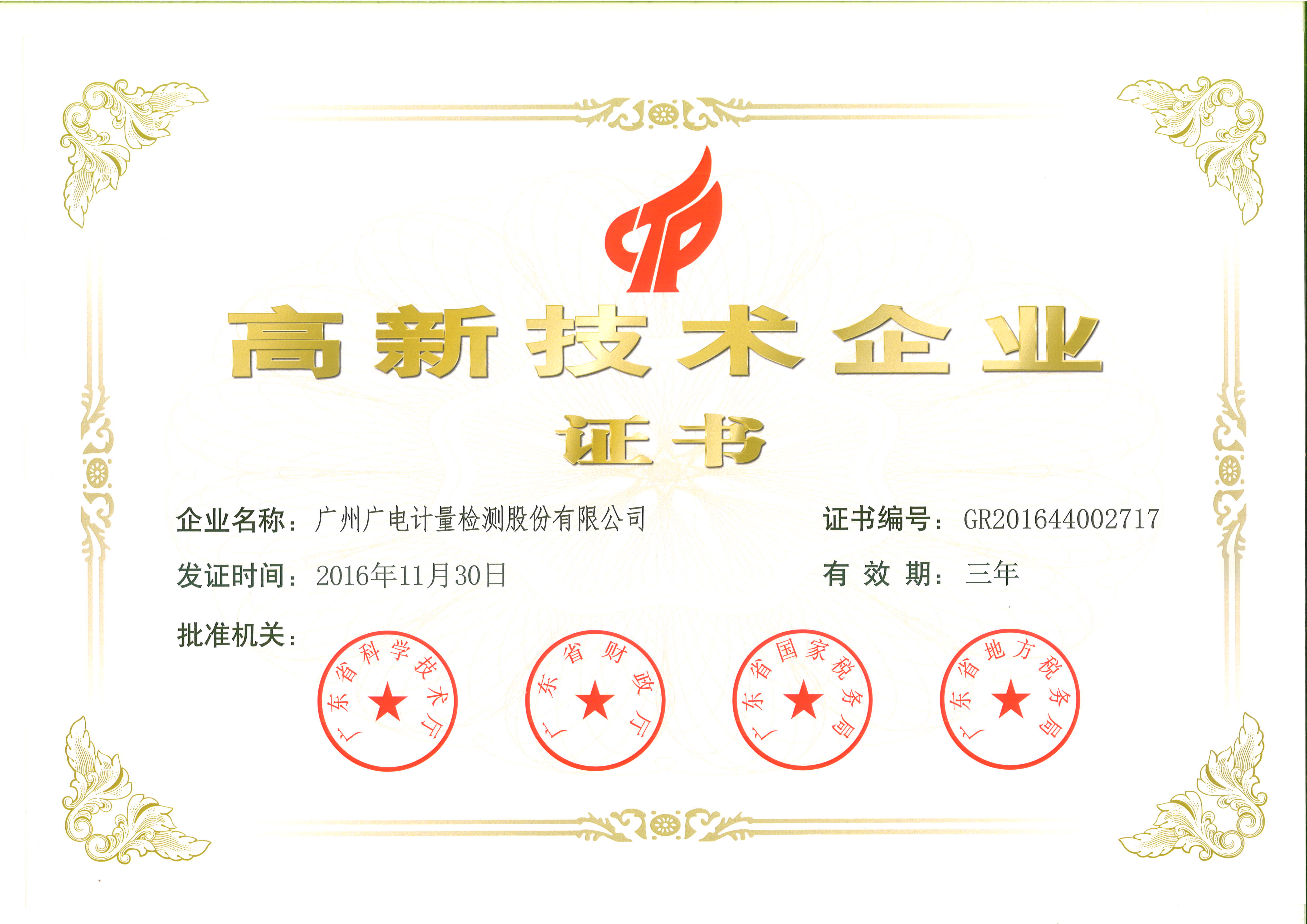 高新技術企業證書