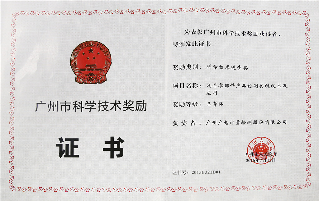 廣州市科學技術三等獎