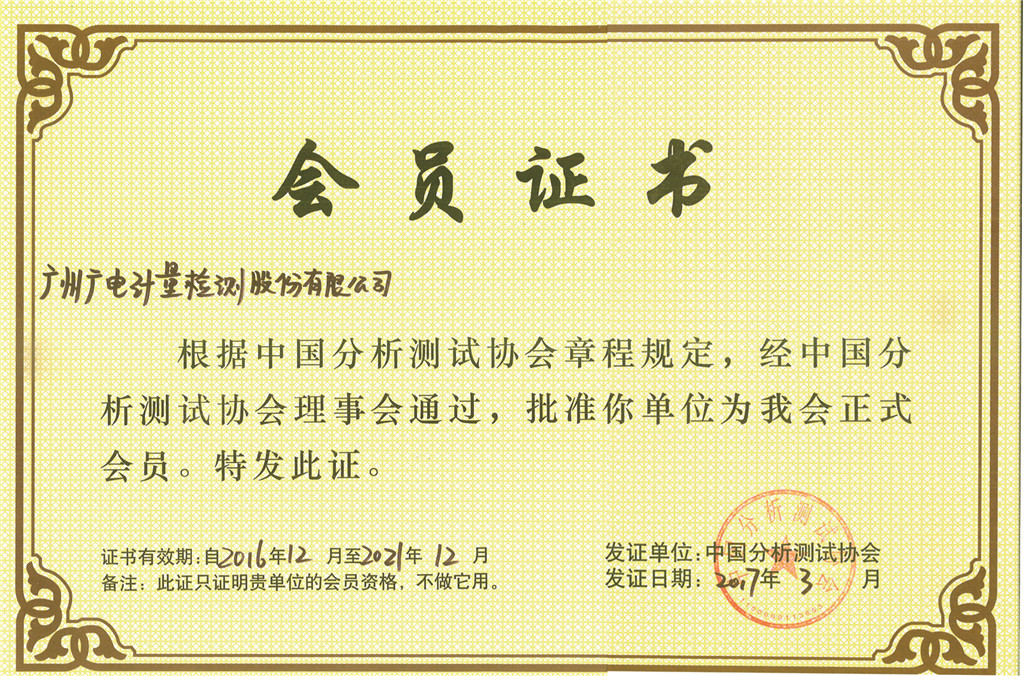 廣東計量協會優秀會員單位