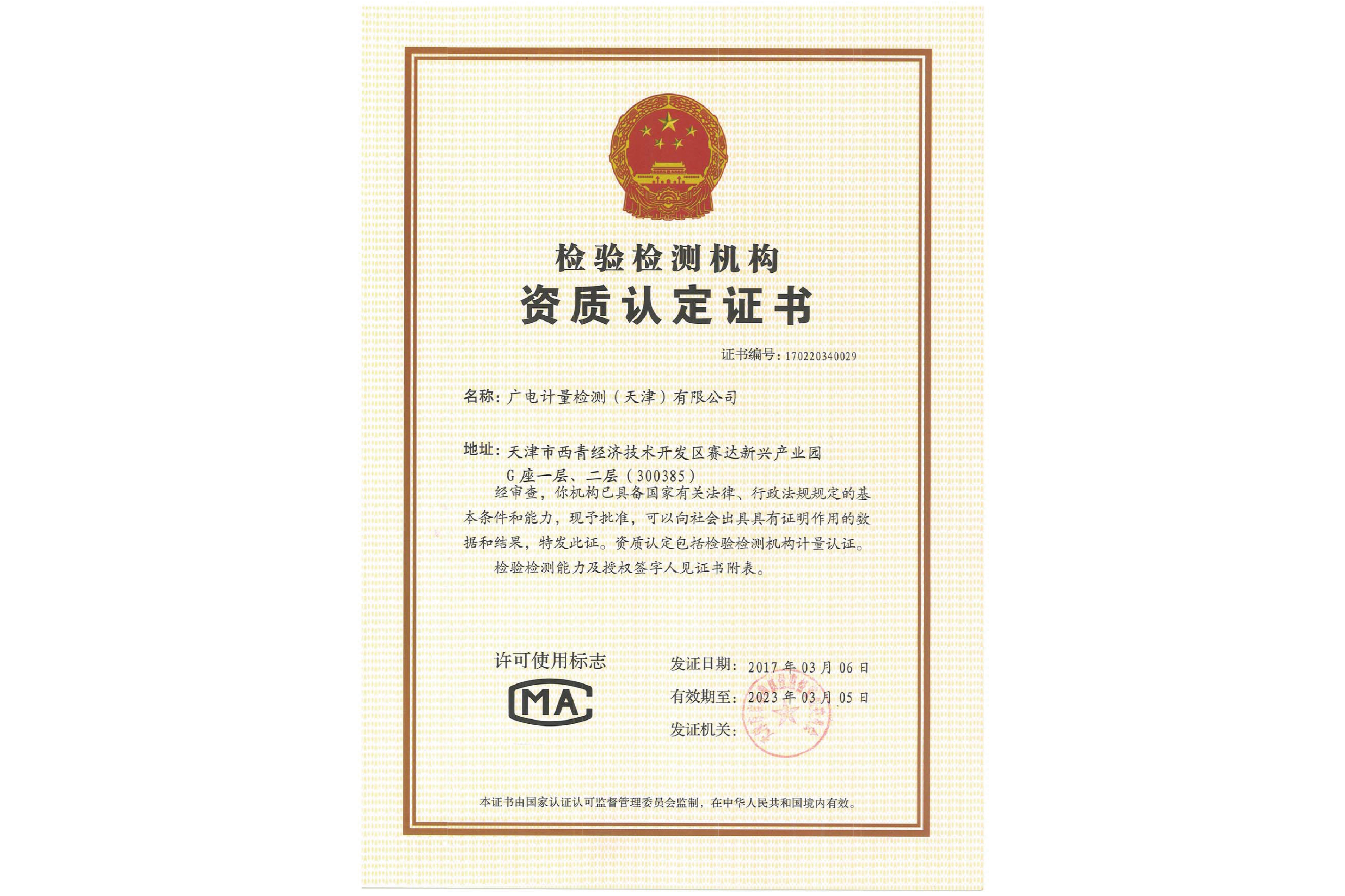 檢驗(yàn)檢測機(jī)構(gòu)資質(zhì)認(rèn)定(CMA)證書-廣電計(jì)量(天津)有限公司