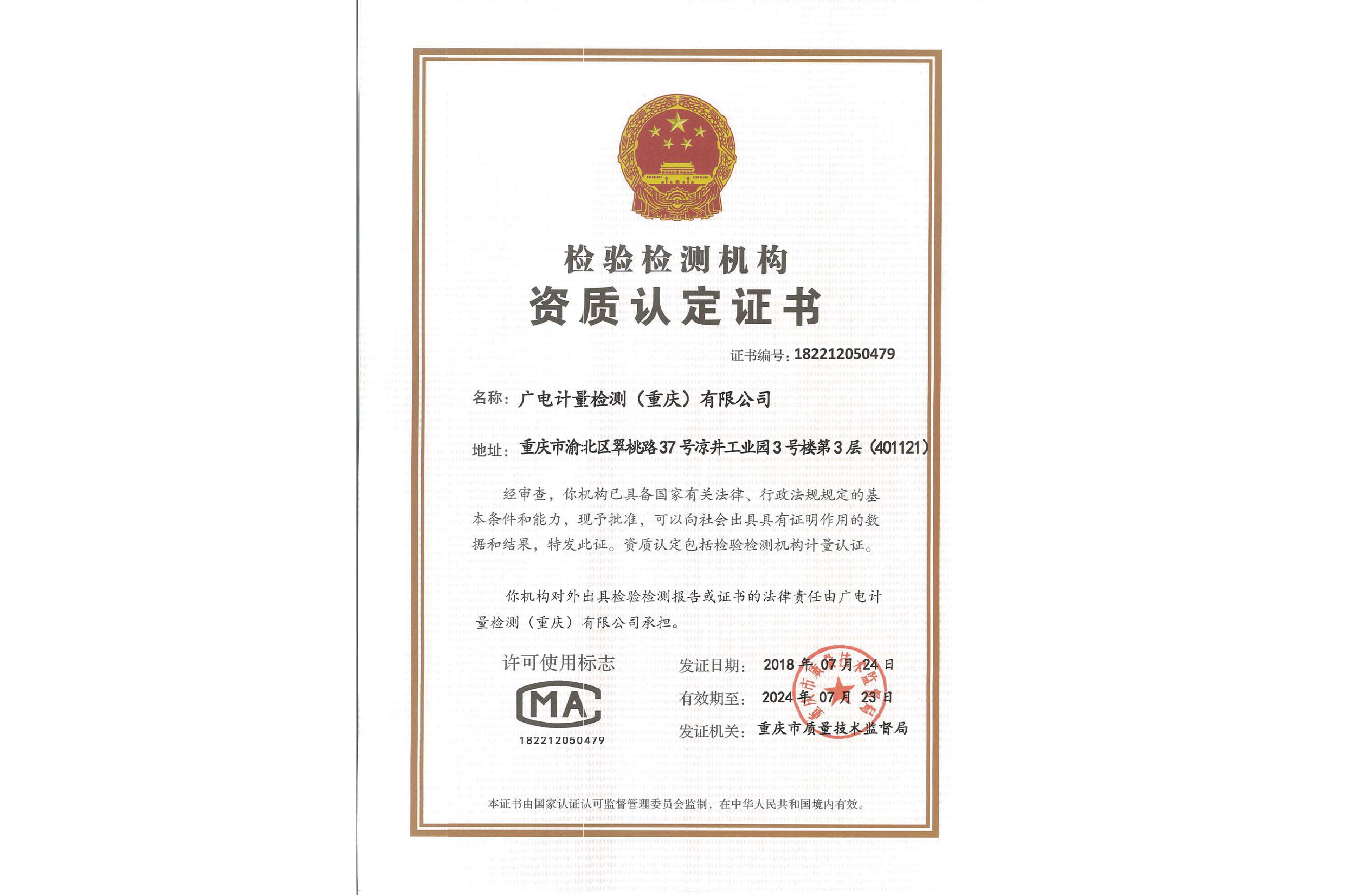 檢驗(yàn)檢測機(jī)構(gòu)資質(zhì)認(rèn)定(CMA)證書-廣電計(jì)量(重慶)有限公司