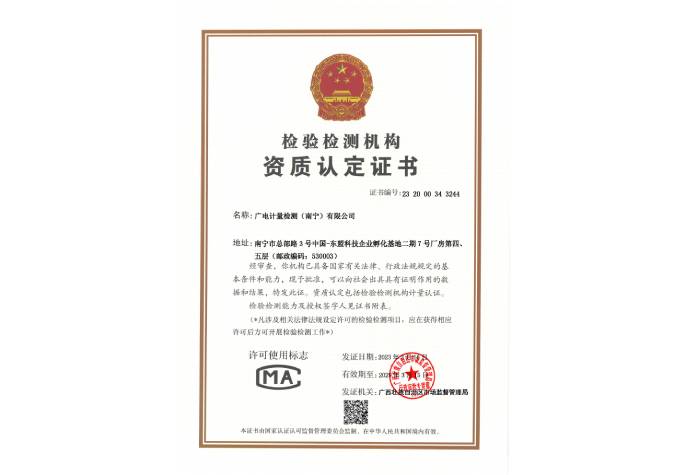 檢驗(yàn)檢測機(jī)構(gòu)資質(zhì)認(rèn)定(CMA)證書-廣電計(jì)量(南寧)有限公司