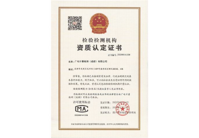 檢驗(yàn)檢測機(jī)構(gòu)資質(zhì)認(rèn)定(CMA)證書-廣電計(jì)量(成都)有限公司