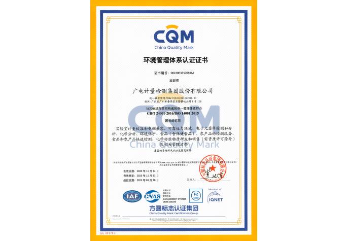 環(huán)境管理體系認(rèn)證證書