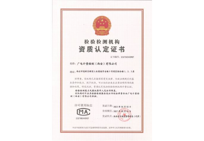 檢驗(yàn)檢測機(jī)構(gòu)資質(zhì)認(rèn)定(CMA)證書-廣電計(jì)量(西安)有限公司