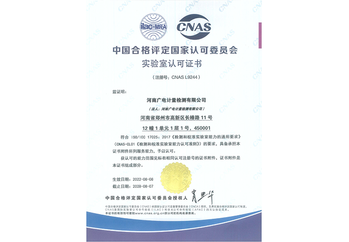 實(shí)驗(yàn)室認(rèn)可(CNAS)證書(中文)—河南廣電計(jì)量