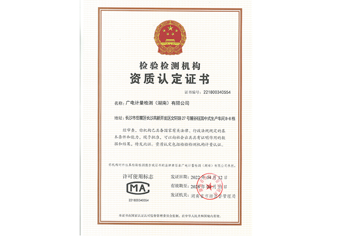 檢驗(yàn)檢測機(jī)構(gòu)資質(zhì)認(rèn)定(CMA)證書-廣電計(jì)量檢測(湖南)有限公司