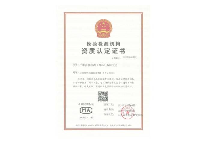 檢驗(yàn)檢測機(jī)構(gòu)資質(zhì)認(rèn)定(CMA)證書-廣電計(jì)量檢測(青島)有限公司