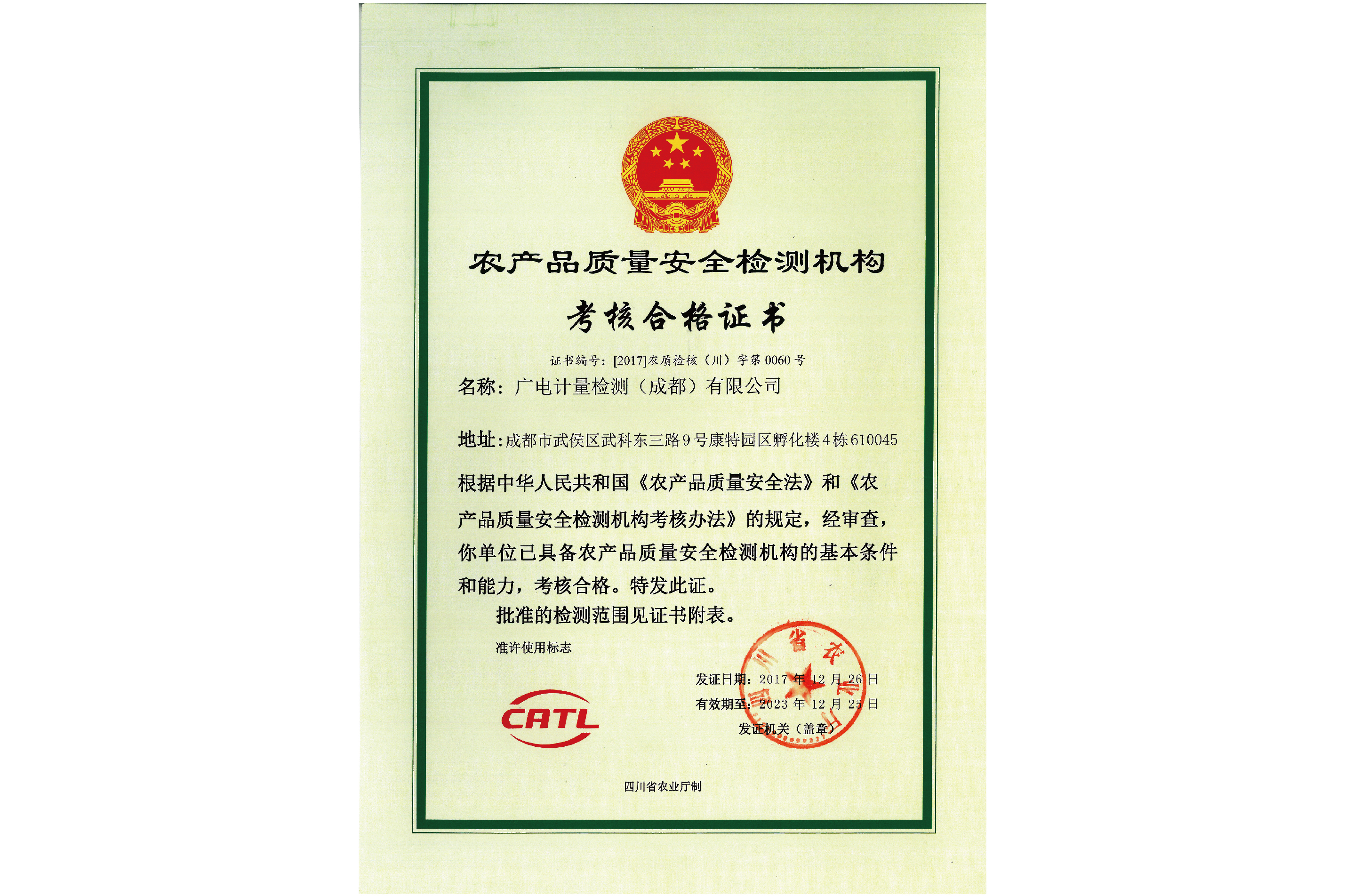 農產品質量安全檢測機構(CATL)合格證書-廣電計量檢測(成都 )有限公司