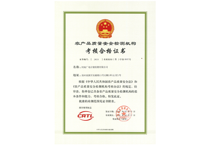 農產品質量安全檢測機構(CATL)合格證書- 河南廣電計量檢測有限公司