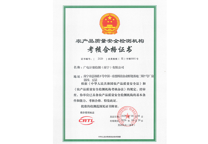 農產品質量安全檢測機構(CATL)合格證書-廣電計量(南寧)有限公司