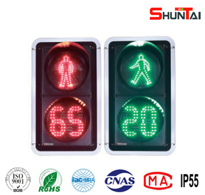 人行信號燈出光面直徑有300mm和400mm,光源采用進口超高亮度LED,具有壽命長、功耗低、外觀新穎等特點。