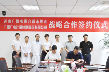 廣電計量與河南廣播電視臺都市頻道在河南廣電計量檢測有限公司簽署欄目合作備忘錄,擬共同推出《都市檢測報告》欄目。