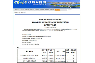 廣電計量中標湖南省農業廳2016年耕地重金屬污染修復試點調查監測檢測分析項目