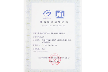 化學(xué)分析測(cè)試中心以優(yōu)異成績(jī)通過(guò)北京中實(shí)國(guó)金國(guó)際實(shí)驗(yàn)室能力驗(yàn)證研究有限公司關(guān)于“NIL PT-0497-2 低合金鋼中化學(xué)成分分析(國(guó)際比對(duì))”能力驗(yàn)證。