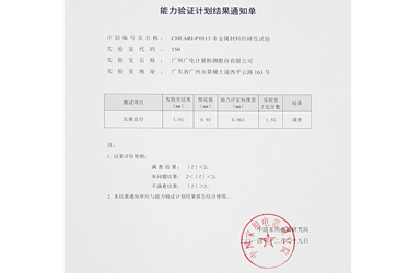 安全檢測(cè)中心以優(yōu)異成績(jī)通過(guò)中國(guó)家用電器研究院關(guān)于“CHEARI-PT013 非金屬材料的球壓試驗(yàn)”能力驗(yàn)證。