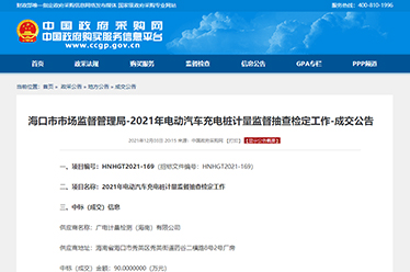 喜訊 | 海南廣電計量首獲充電樁計量監(jiān)督抽查檢定政府采購項目