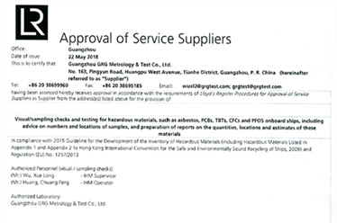 廣電計量新獲英國勞氏船級社船舶有害物質(zhì)取樣及實驗室檢測機構(gòu)認可
