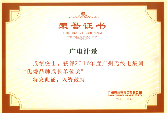廣電計量獲評2016年度廣州無線電集團“優秀品牌成長單位獎”等多項榮譽