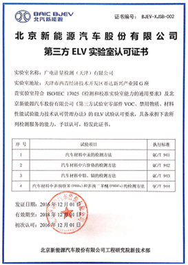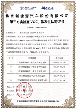 廣電計量新獲北汽新能源第三方實驗室VOC、散發性試驗認可
