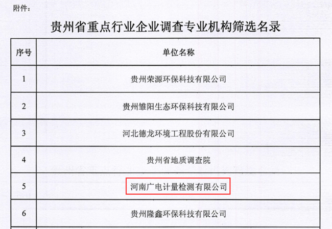 廣電計量成功入選貴州省重點行業企業用地調查專業機構篩選名錄