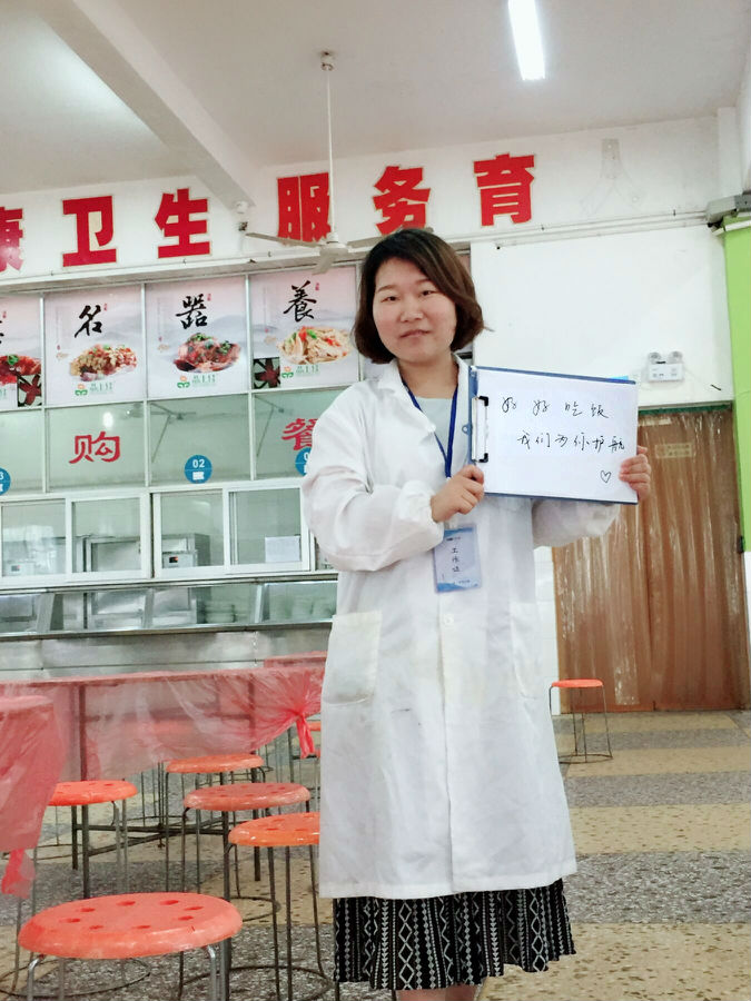 在某考場食堂,技術(shù)人員對食品原材料進行快速檢測,并逐一做好詳細記錄。