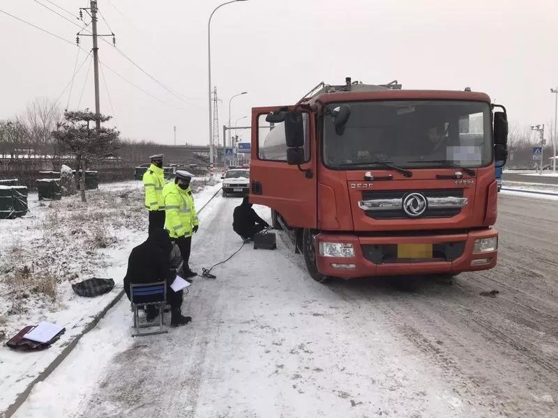 “掛空擋,拉手剎!”隨后,一名交警登上駕駛艙,用力踩下油門,隨即傳來發(fā)動(dòng)機(jī)的轟鳴聲。與此同時(shí),還有一人正蹲著身子,將長長的管線插入大貨車的排氣管。