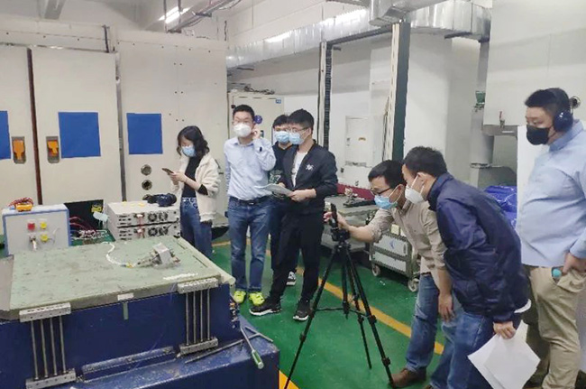 為保證遠程目擊試驗真實、可靠,審查組工程代表首先向申請人和廣電計量技術負責人宣貫了審查組的要求,明確了遠程審查的開展前提和實施原則,并由委任制造檢查代表在廣州試驗現場完成了試驗前制造檢查。本次遠程目擊試驗采取固定鏡頭和移動鏡頭相配合的方式,保證試驗現場實況的360°全覆蓋。試驗條件準備就緒后,審查組、申請人和廣電計量技術人員按照試驗大綱,共同開展了試驗目擊檢查,確認測試數據;并由審查組根據目擊檢查情況,向申請人反饋檢查結果,圓滿完成了檢查工作。
