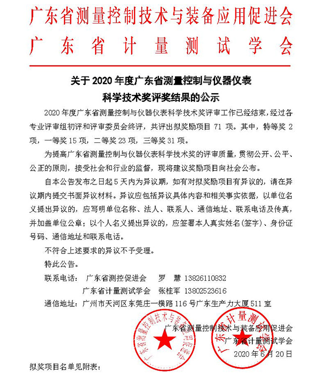 廣東省測量控制與儀器儀表科學技術獎是由廣東省測量控制與裝備應用促進會、廣東省計量測試學會聯合設立和承辦,面向全省測量控制與儀器儀表領域的科技獎項,旨在表彰測量控制與儀器儀表科技工作中做出突出貢獻的集體和個人,鼓勵測量控制與儀器儀表領域廣大科技工作者的積極性、創造性,促進廣東省測量控制與儀器儀表科學技術的發展,提高測量控制與儀器儀表領域的綜合實力和水平。