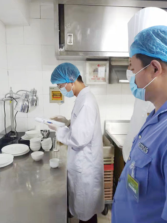 9月初,西安廣電計(jì)量接到西安市新城區(qū)市場(chǎng)監(jiān)督管理局委托任務(wù),為“十四運(yùn)”接待酒店進(jìn)行專項(xiàng)食品安全保障。9月8日起,西安食品農(nóng)產(chǎn)品檢測(cè)實(shí)驗(yàn)室派出技術(shù)人員進(jìn)駐酒店,負(fù)責(zé)對(duì)酒店食品原材料、餐具、人員衛(wèi)生等進(jìn)行現(xiàn)場(chǎng)快檢,涵蓋蔬菜、水果、鮮食用菌、水產(chǎn)品、食用油、熟食成品、盒飯、工器具、餐飲具、操作間人員手部、餐廳紫外線燈強(qiáng)度等。