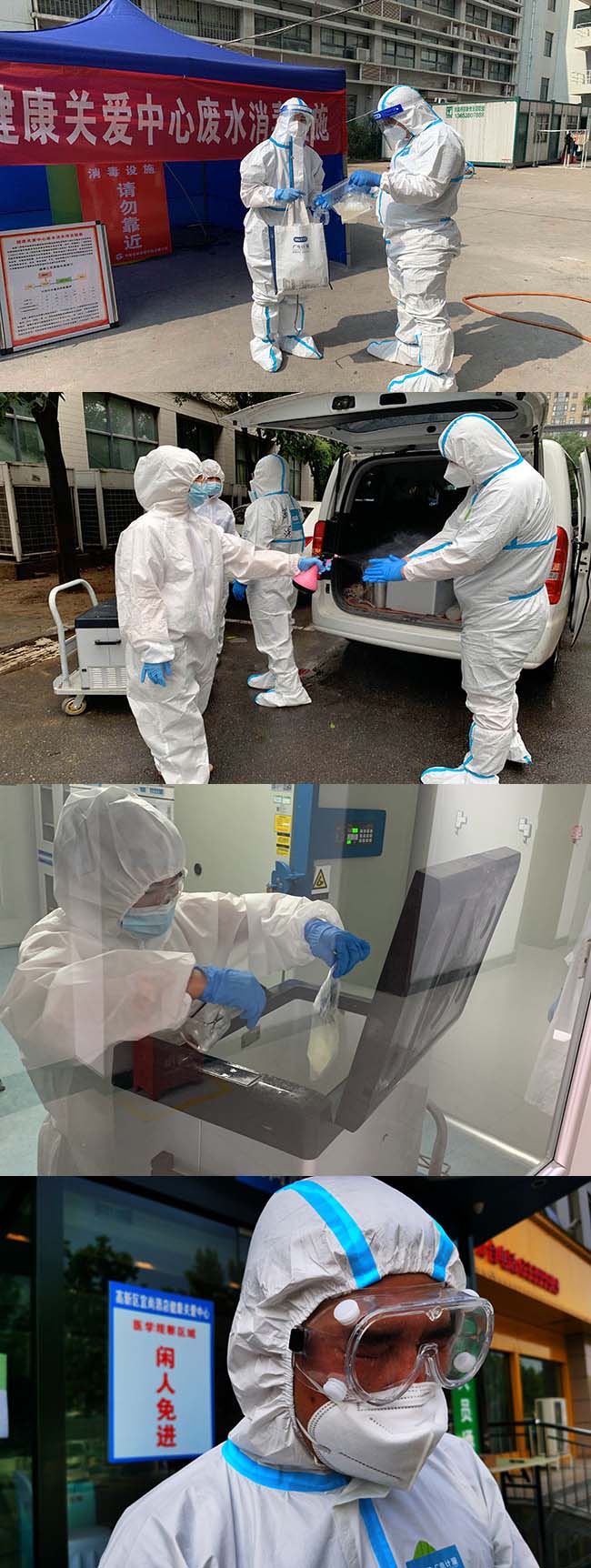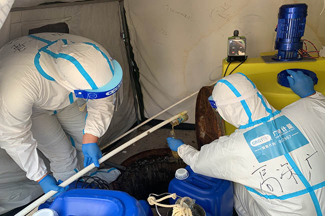 知之非難,行之不易。為切斷一切傳播風險,不給病毒可乘之機,確保所有人員安全,項目保障全流程按照最嚴格標準進行:采樣器具定點專用、樣品實行三重消殺——包括采樣現場、交接現場、流轉實驗室后分析前;相關人員穿戴防護服并集中安排住宿;相關廢物每天定點投放到固定醫療廢物收集點;檢測分析指定專區,數據實行網上電子傳報等。先鋒隊員們盡管每天都被浸泡在汗水中,卻沒有一句怨言,說的最多一句話就是:我還行,扛得住!