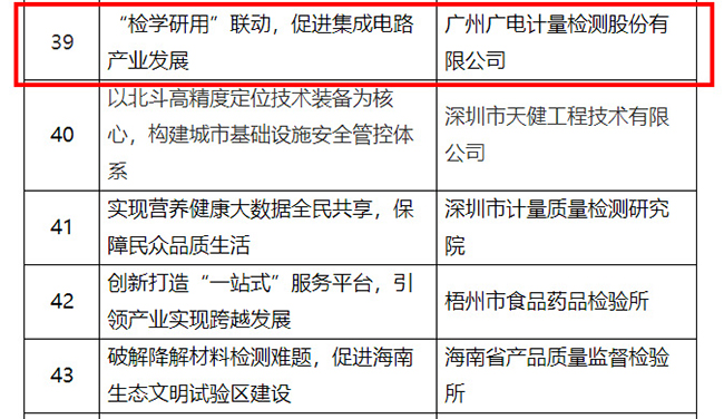 日前,國家市場監管總局認可檢測司公布50個“檢驗檢測促進經濟社會創新發展”優秀案例。廣電計量報送的《“檢學研用”聯動,促進集成電路產業發展》案例,通過構建多層次測試驗證能力,以需求為導向精準服務企業,攜手高校院所開展深度合作,以黨建引領發揮團隊戰斗力,在創新性、實用性、效益性、規范性等方面均獲得專家評審的認可,在全國315個案例中脫穎而出,成功入選。