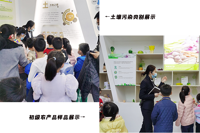 活動第一站,學生及家長走進宣傳教育展廳,通過觀看教育短片,以及廢水、農(nóng)產(chǎn)品、加工食品、食品添加劑等實驗室樣品展示,在宣講員介紹中深入了解環(huán)境保護及食品安全的重要性。