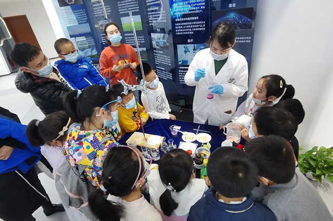 接著,懷揣著對科普小實驗的好奇心,學生家長一行來到了活動第二站——互動試驗區(qū)。