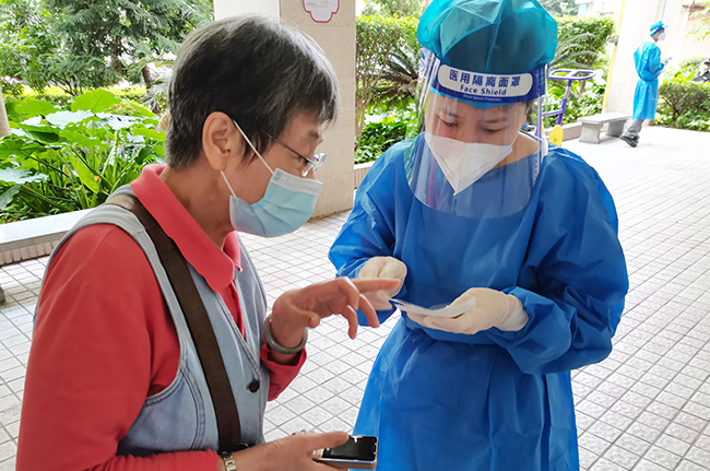 市場(chǎng)綜合黨支部黨員趙敬居住在白云區(qū),此前早已下沉社區(qū)多次支援,在4月8日當(dāng)天更是從晚上8點(diǎn)連續(xù)戰(zhàn)斗到第二天早上6點(diǎn)。“累一點(diǎn)不算什么,黨員就是要關(guān)鍵時(shí)刻站出來,重要時(shí)刻沖上去,這是我應(yīng)該做的。”趙敬說。這次來到白云支援點(diǎn),她主要負(fù)責(zé)維護(hù)排隊(duì)秩序,一邊檢查居民健康碼和核酸碼,一邊關(guān)注老人、孕婦等群眾,把他們指引到綠色通道。看似簡(jiǎn)單、重復(fù)的工作,卻時(shí)時(shí)考驗(yàn)著志愿者們的耐心、細(xì)心。在這場(chǎng)爭(zhēng)分奪秒的疫情阻擊戰(zhàn)中,每個(gè)人都是不平凡的“逆行者”。