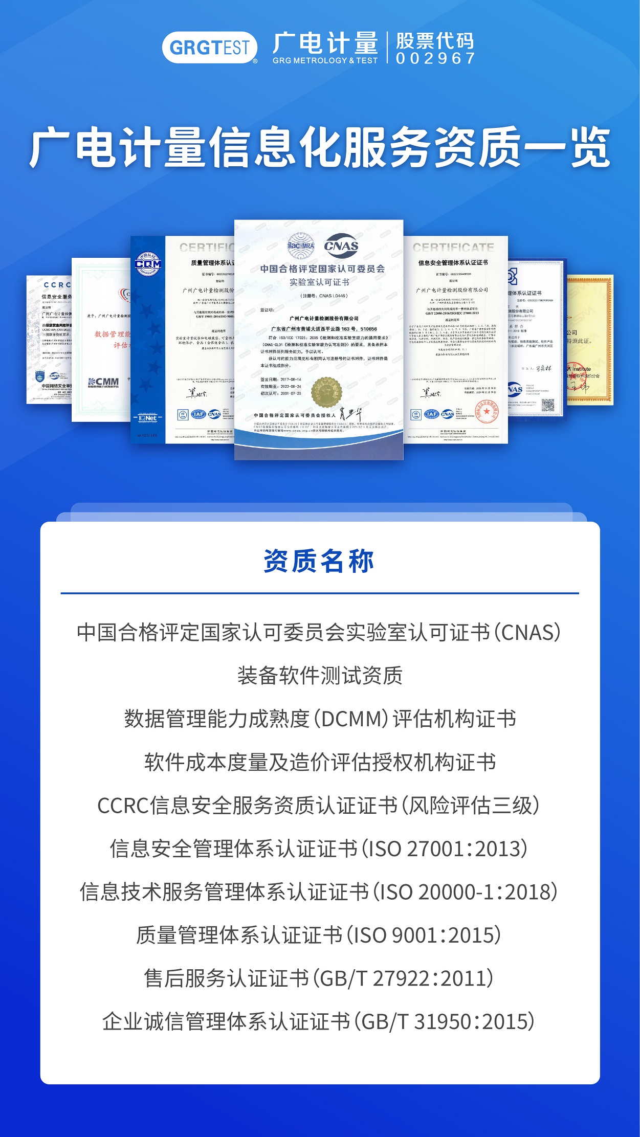 近年來,廣電計量信息化服務(wù)事業(yè)部集結(jié)了一支以博士專家為帶頭人的專業(yè)技術(shù)團隊,構(gòu)建了軟件全生命周期的測試級別與測試能力。目前,公司已具備CNAS、裝備軟件測試、數(shù)據(jù)管理能力成熟度(DCMM)評估機構(gòu)、SSM軟件成本度量及造價評估服務(wù)機構(gòu)、CCRC信息安全風(fēng)險評估服務(wù)機構(gòu)、ISO 27001、ISO 20000、ISO 9001等多個資質(zhì),服務(wù)能力覆蓋軟件測評、信息安全風(fēng)險評估、信息安全測試、滲透測試、代碼審計、咨詢規(guī)劃、應(yīng)急響應(yīng)等領(lǐng)域,是全國現(xiàn)有12家DCMM評估機構(gòu)之一。同時以全國20多個計量檢測基地和60多家分子公司為依托,構(gòu)建了全國性的服務(wù)網(wǎng)絡(luò),可就近為客戶提供專業(yè)技術(shù)服務(wù),有效支撐各省市政府部門、單位、企業(yè)信息化建設(shè)需求。