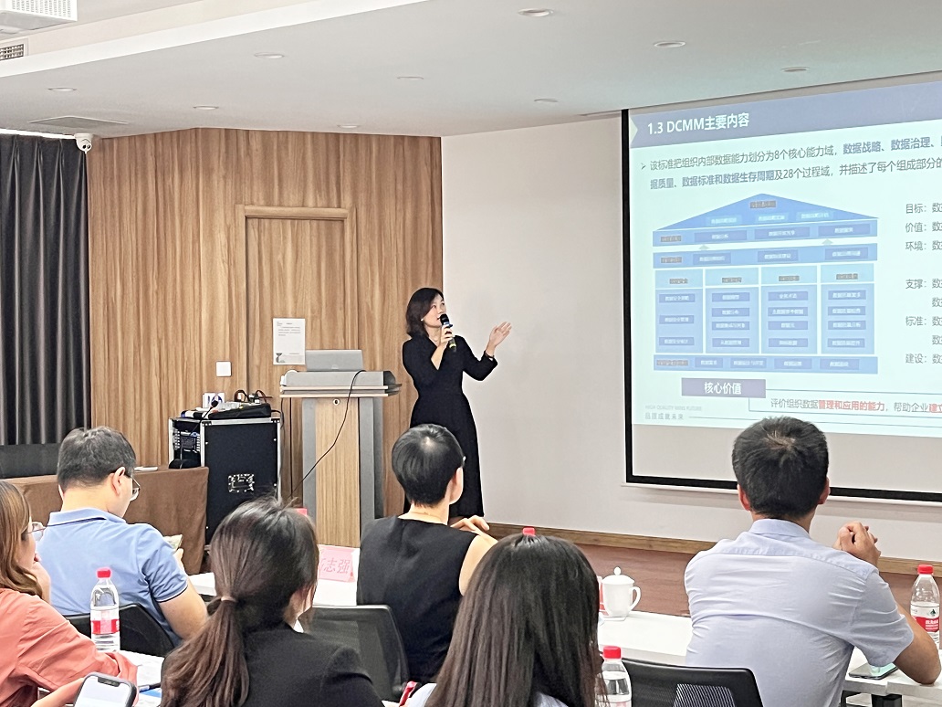會(huì)上,青島廣電計(jì)量副總經(jīng)理周美玉向與會(huì)嘉賓介紹了公司技術(shù)服務(wù)能力與發(fā)展情況。廣電計(jì)量DCMM評(píng)估負(fù)責(zé)人郭婧介紹了《數(shù)據(jù)管理能力成熟度評(píng)估模型》評(píng)估流程及評(píng)估服務(wù)解析,結(jié)合企業(yè)服務(wù)案例經(jīng)驗(yàn),深入淺出地解析評(píng)估過程中的常見問題,為參會(huì)企業(yè)推進(jìn)DCMM評(píng)估實(shí)施提供培訓(xùn)輔導(dǎo)、分享實(shí)戰(zhàn)經(jīng)驗(yàn)。