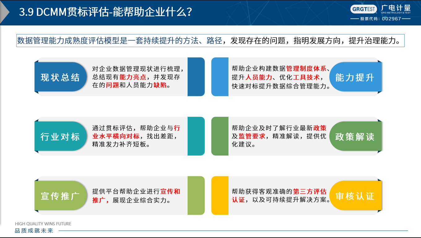 未來,廣電計量將發(fā)揮技術(shù)服務(wù)優(yōu)勢,繼續(xù)支撐工信部、各地工信主管部門、大數(shù)據(jù)主管部門、政務(wù)數(shù)據(jù)管理部門等單位做好DCMM和數(shù)據(jù)管理相關(guān)工作,助力國家大數(shù)據(jù)戰(zhàn)略,推動國家大數(shù)據(jù)治理體系建設(shè)的政策落地。