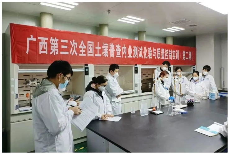 廣電計(jì)量南寧子公司生態(tài)環(huán)境檢測實(shí)驗(yàn)室承接上林縣土壤三普試點(diǎn)樣品檢測分析服務(wù)。工作開展前實(shí)驗(yàn)室認(rèn)真制定《第三次全國土壤普查試點(diǎn)項(xiàng)目土壤樣品檢測內(nèi)部質(zhì)量控制和保證方案》,從人、機(jī)、料、法、環(huán)、測等相關(guān)環(huán)節(jié)開展全流程、全環(huán)節(jié)、全方位的質(zhì)控管理。