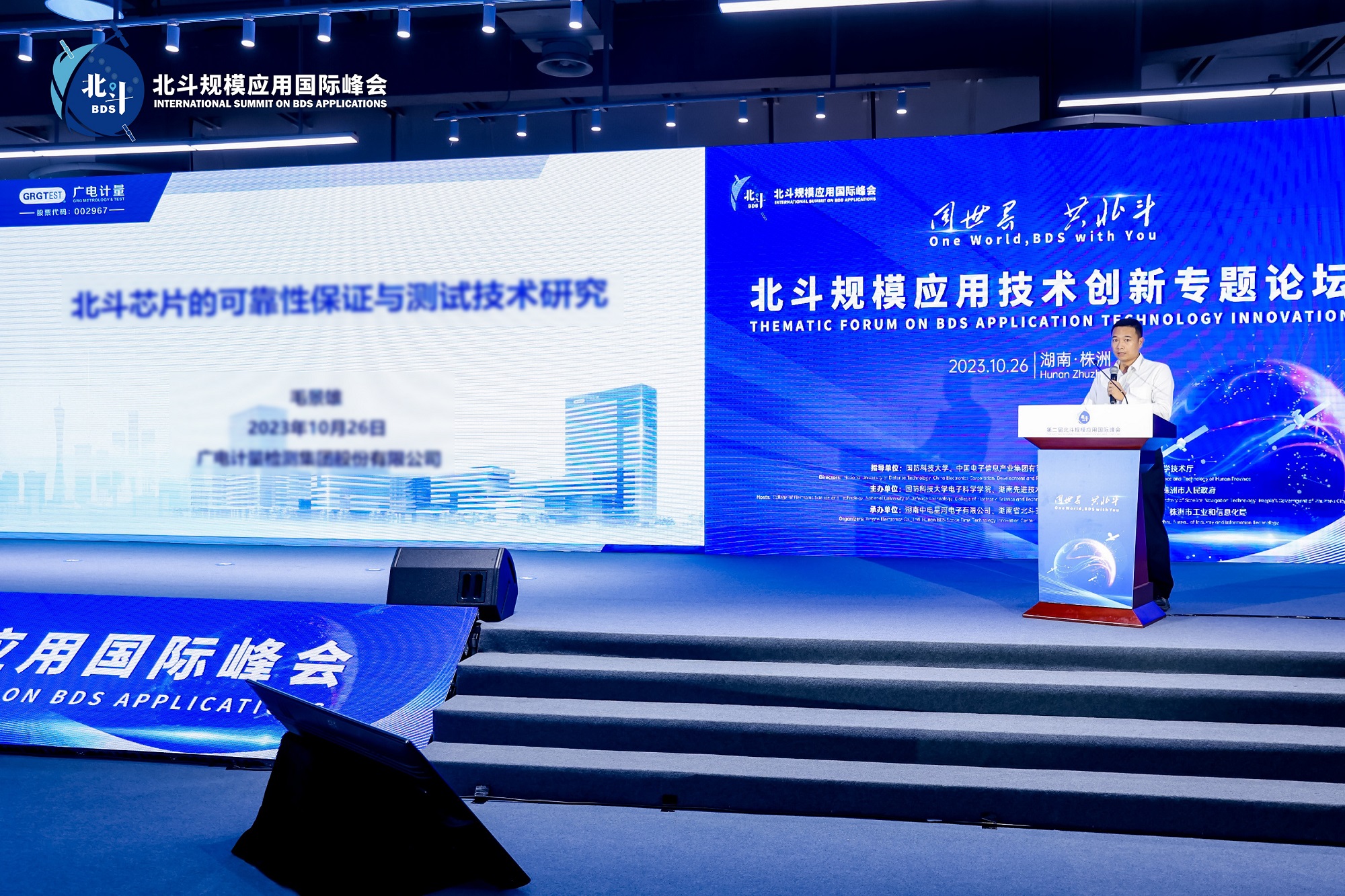 10月26日,第二屆北斗規(guī)模應(yīng)用國(guó)際峰會(huì)在湖南省株洲市舉行。工業(yè)和信息化部黨組書記、部長(zhǎng)金壯龍出席大會(huì)并致辭。湖南省委書記沈曉明,省委副書記、省長(zhǎng)毛偉明出席大會(huì)。廣電計(jì)量受邀參會(huì),集成電路測(cè)試與分析中心副總監(jiān)毛景雄出席專題論壇并作《北斗芯片的可靠性保證與測(cè)試技術(shù)研究》主題報(bào)告。