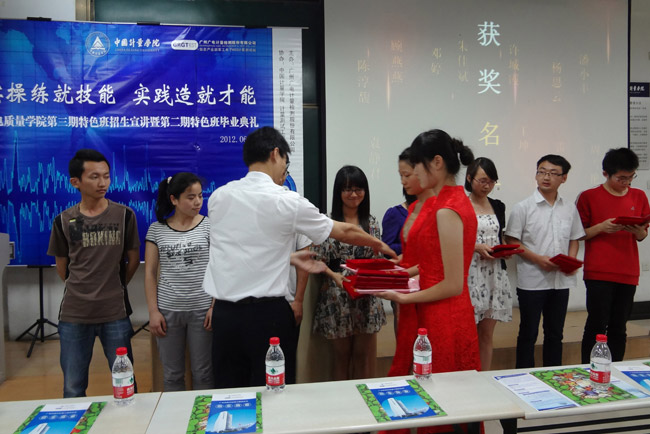 首先校企雙方為廣電質(zhì)量學(xué)院第二期特色班34名學(xué)員舉行簡(jiǎn)單而有意義的畢業(yè)典禮,并頒發(fā)結(jié)業(yè)證書(shū)和“廣電質(zhì)量學(xué)院獎(jiǎng)學(xué)金”。全體學(xué)員在GRGT總部實(shí)驗(yàn)室相繼完成基礎(chǔ)理論知識(shí)、職業(yè)規(guī)劃培訓(xùn),以及實(shí)操訓(xùn)練和實(shí)踐學(xué)習(xí),經(jīng)實(shí)操考核合格,所有學(xué)員圓滿(mǎn)畢業(yè),其中12位學(xué)員獲得“廣電質(zhì)量學(xué)院獎(jiǎng)學(xué)金”。校企雙方領(lǐng)導(dǎo)圍繞廣電質(zhì)量學(xué)院前兩期特色班所取得的成果,進(jìn)一步提升的空間,以及發(fā)展方向,作主題發(fā)言,并對(duì)第三期特色班招生計(jì)劃、培養(yǎng)模式、實(shí)踐學(xué)習(xí)安排、實(shí)習(xí)要求等進(jìn)行主題宣講。宣講會(huì)深受師生關(guān)注,眾多學(xué)生詳細(xì)了解辦班情況,以及后續(xù)工作安排,當(dāng)場(chǎng)報(bào)名參加第三期特色班,現(xiàn)場(chǎng)反映熱烈。
