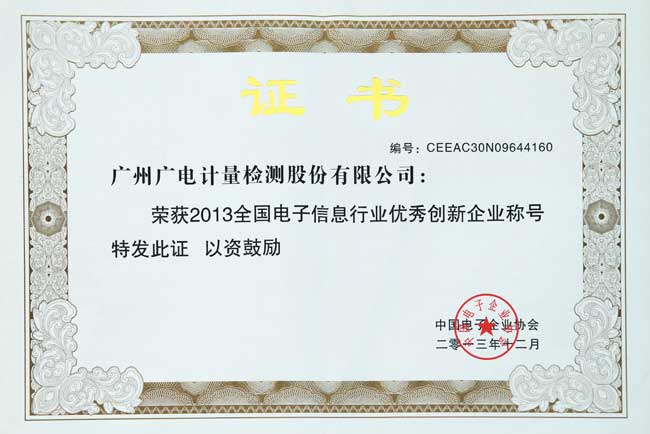 12月1日-2日,在第四屆中國電子高峰論壇暨2013“鼎寶宏”杯全國電子信息行業優秀企業頒獎典禮活動中,GRGT被中國電子企業協會評為“2013年度全國電子信息行業優秀創新企業”。
