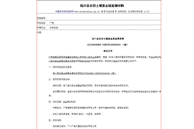 5月9日、5月13日,廣電計量陸續(xù)中標(biāo)廣西省陸川縣農(nóng)田土壤重金屬監(jiān)測采購、廣西省靖西縣水稻樣品重金屬檢測第三方服務(wù)及水稻樣品采集第三方服務(wù)采購兩個環(huán)保項(xiàng)目。本次接連中標(biāo)政府環(huán)保檢測項(xiàng)目是廣電計量籌建南寧檢測基地,正式進(jìn)軍廣西市場的良好開局,后續(xù)廣電計量將進(jìn)一步完善南寧市實(shí)驗(yàn)室檢測能力,為廣西政府、企業(yè)提供更優(yōu)質(zhì)、可靠的本地化服務(wù)。