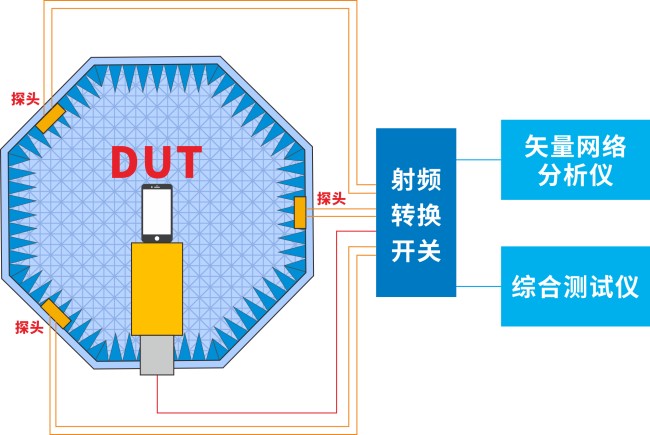 對于RF傳導(dǎo)測試來說,隨著被測設(shè)備 (DUT) 的集成度大幅提升,我們無法使用電纜在被測設(shè)備和測試設(shè)備之間建立物理連接。更重要的是,它無法將天線因素對整機(jī)性能的影響考慮在內(nèi),難以完整驗(yàn)證出整機(jī)內(nèi)部不同功能單元的干擾情況,也無法評估人體對產(chǎn)品無線性能影響。