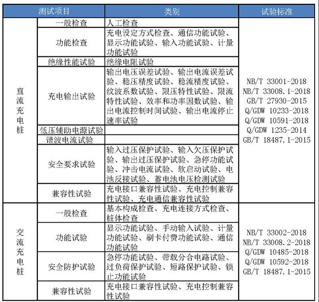 充電樁(機)檢測是保障充電樁(機)安全可靠的重點項目之一,主要分為兩個檢測方向,一個是電參數的檢測項目,一個是兼容性的檢測項目。