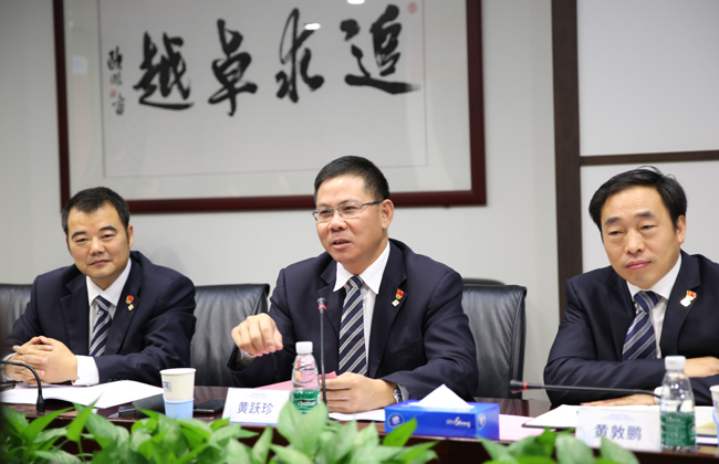 廣州無線電集團(tuán)總經(jīng)理、廣電計(jì)量董事長黃躍珍(中)致辭