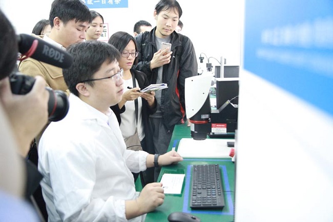 在現場記者看到,一名工程師正在用納米級檢測儀對一枚芯片進行失效檢測,通過檢測設備的分析成像,這枚芯片內部的紋路設計,甚至芯片表面比頭發絲小幾千倍的缺陷也能被檢測出來。