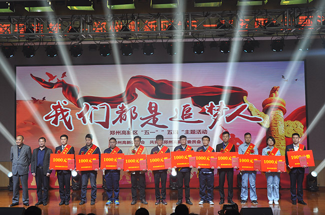 魏亮(左三)獲鄭州高新區“金牌工人”榮譽稱號