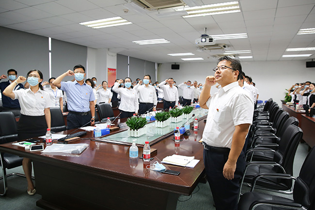 為激勵士氣,直面挑戰,全力沖刺公司年度目標,由武漢子公司黨支部書記、副總經理彭磊領誓,全體黨員舉起右手,進行“攻堅克難全力沖刺80天”宣誓。大家以飽滿的熱情和聲音傳達出作為共產黨員的使命感和責任感,將積極踐行廣電計量“黨員先進性”標準,吃苦在前、沖鋒在先、攻堅克難、勇于奉獻,搶時間、沖業績、保質量,大干80天、沖刺80天,為助力公司完成全年生產經營目標貢獻先鋒力量。