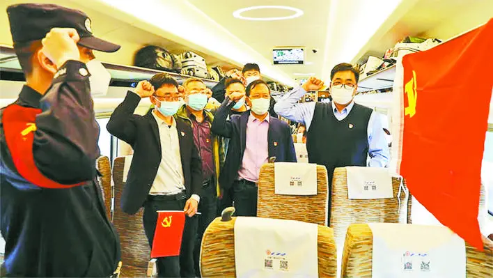 “我們的列車途經紅色革命城市,像武漢、瑞金、貴州、南昌,利用值乘列車運行期間途經多處紅色資源的優勢,我們成立列車臨時黨支部向廣大旅客開展黨史主題教育。”北京鐵路公安局石家莊公安處乘警支隊乘務五大隊黨支部支部書記蘇懷順說,“要把黨史教育和乘務工作實際結合起來,引導大家回顧八七會議、黃土嶺戰役、南昌起義、解放南京等那些浴血奮戰的歷史,使大家了解中國共產黨對中國革命的貢獻。”